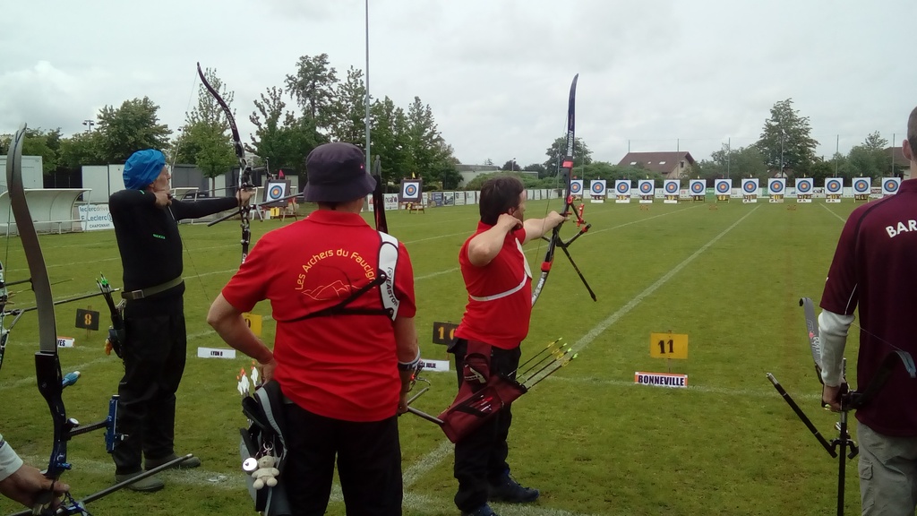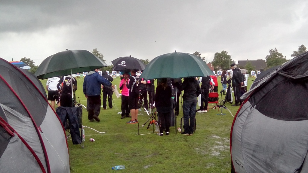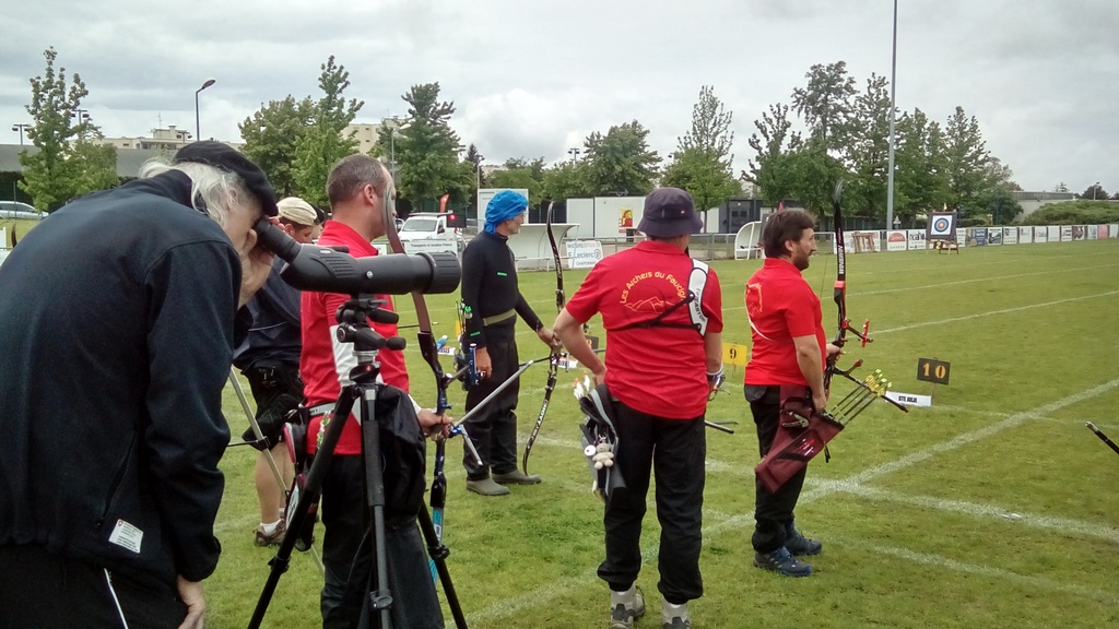 Après des qualifications sous une pluie fine et régulière, les conditions ne sont finalement pas si catastrophiques que ce à quoi l'on s'attendait. Nous finissons 8° avec des scores meilleurs que lors de la dernière manche. Christophe CORRIGER et Gilles DECREUSE terminent avec le même score 566 points, Olivier BOURAND 554 points, et Régis CALLY venu nous épauler pour l'occasion, améliore son score sur la distance et fait 484 points pour son deuxième tir en FITA de sa courte carrière.