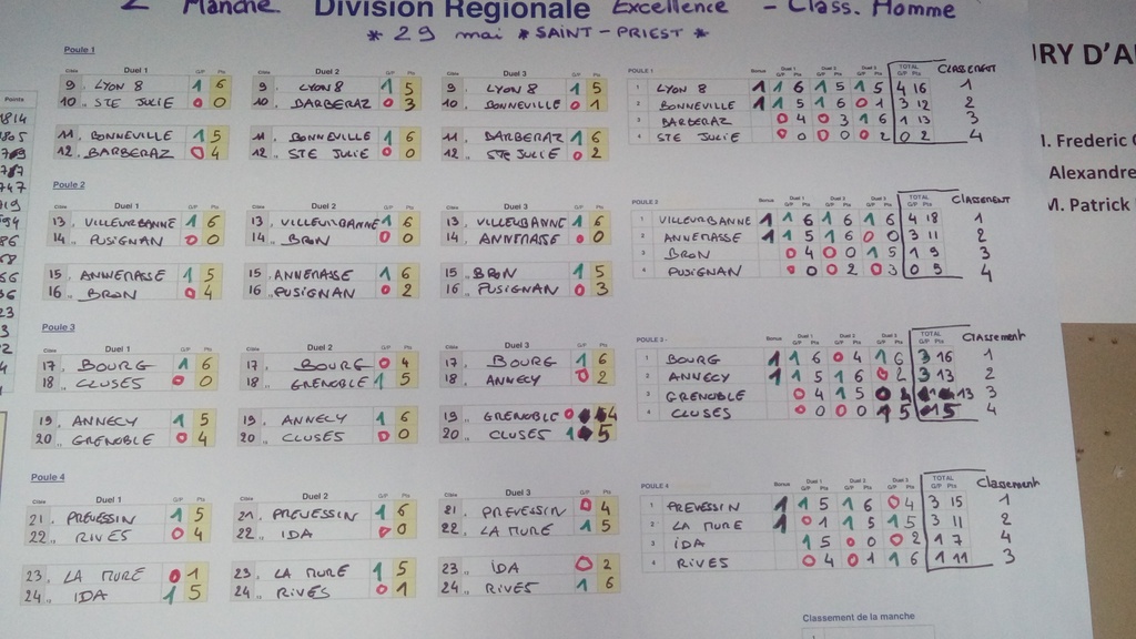 Prochain épisode à BOURG en BRESSE le 19 juin pour finir cette saison par équipe. Une bonne place nous permettrait d'être classé dans les 8 premiers, ce qui nous assurerait une place en DRE la saison prochaine dans la nouvelle ligue Rhône-Alpes Auvergne.